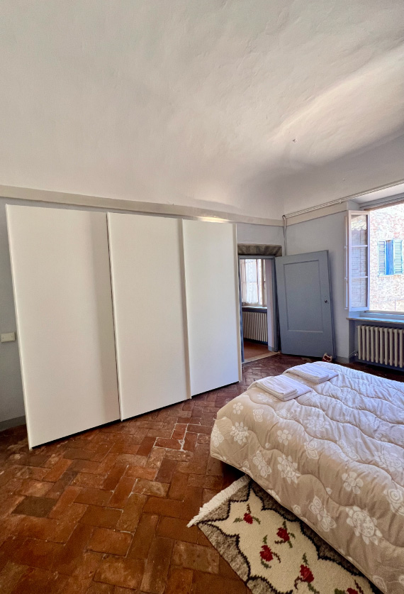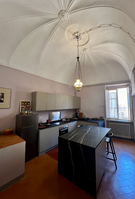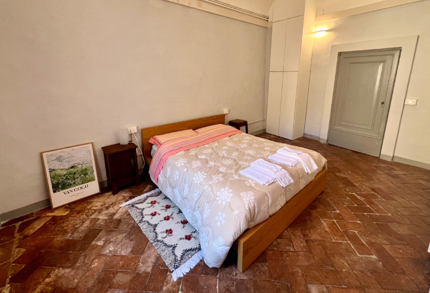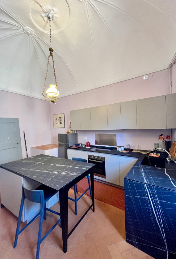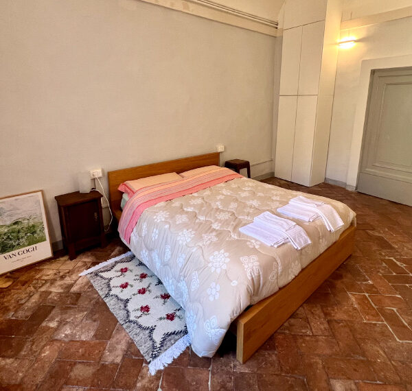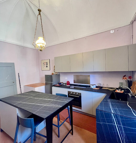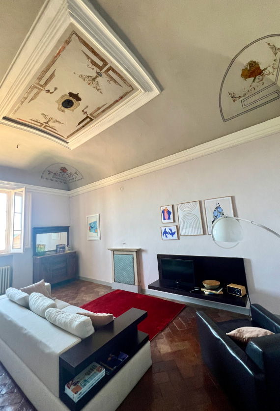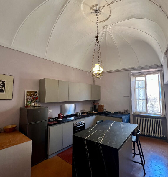 L’appartamento si trova al piano primo raggiungibile tramite un imponente scalone rinascimentale ed è composto da cucina, sala da pranzo, salone, 2 camere da letto e 1 bagno.